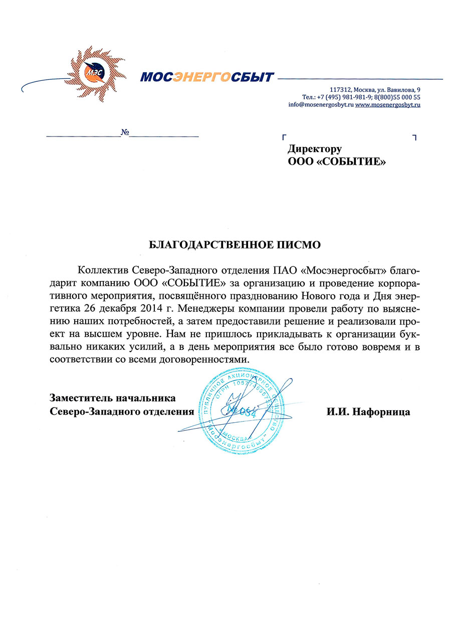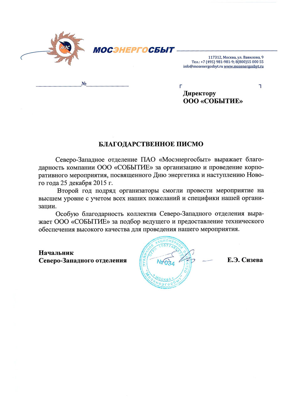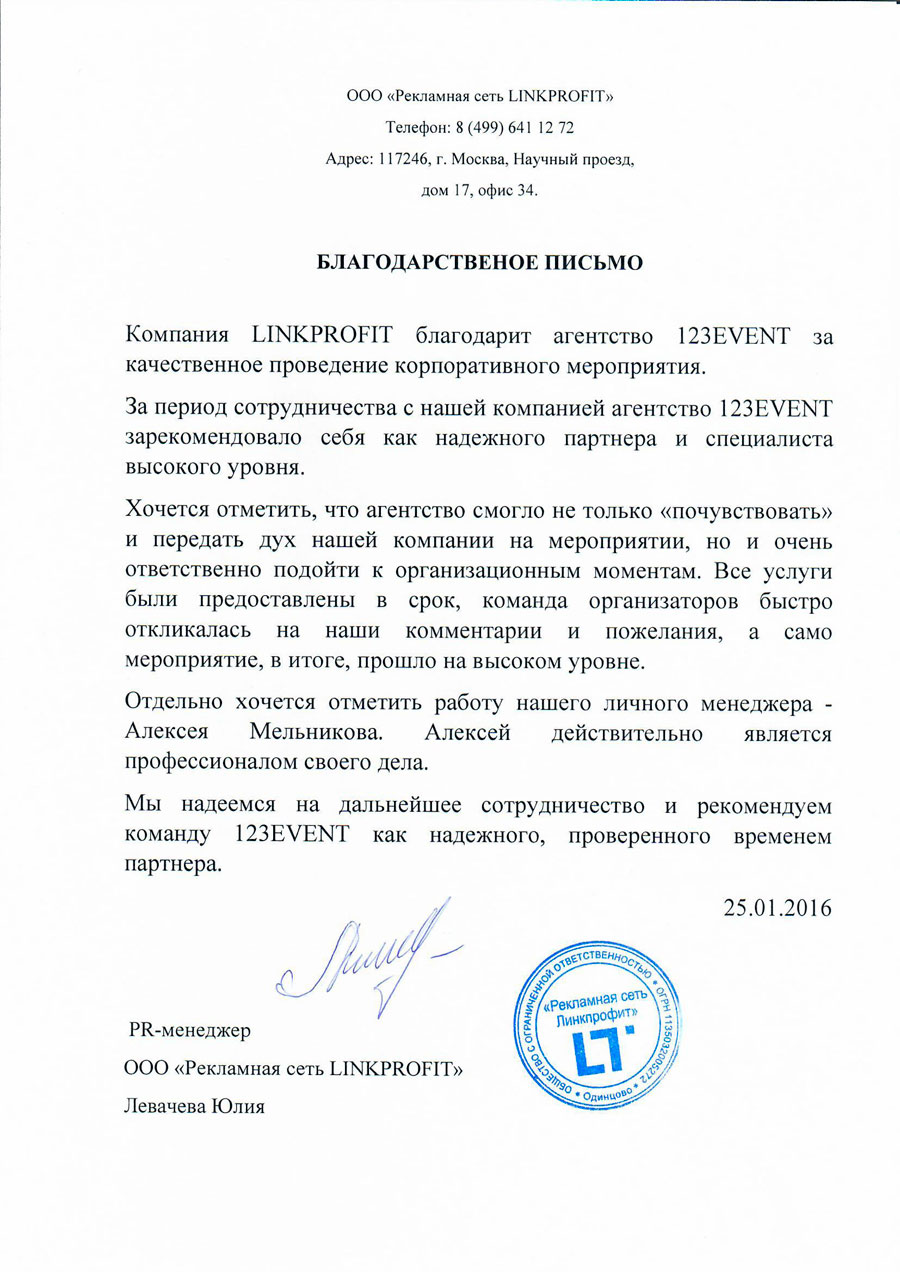 Благодарственные письма