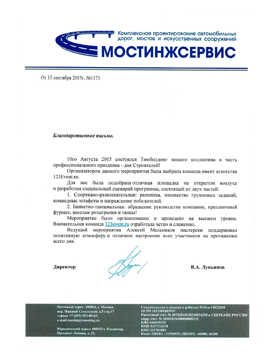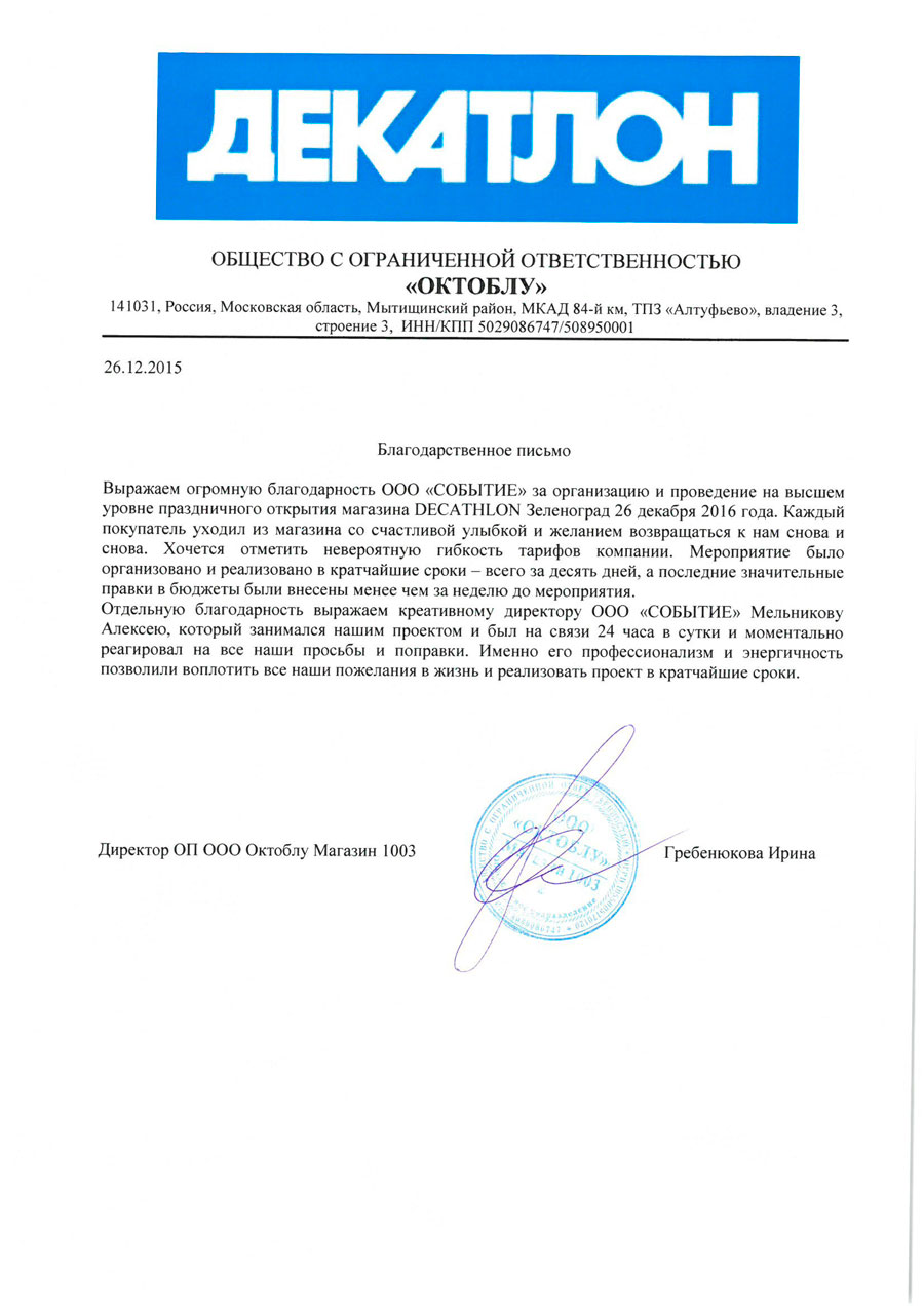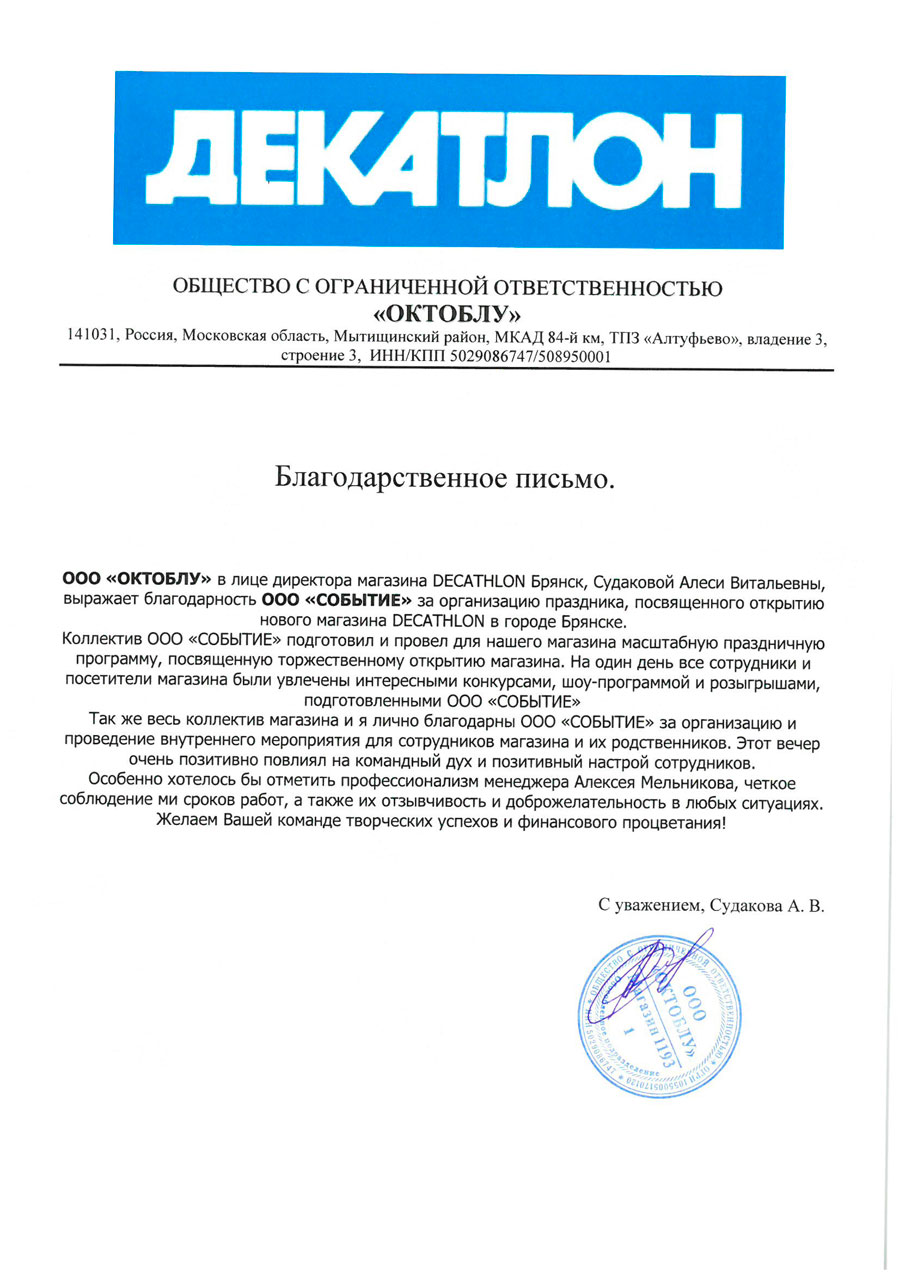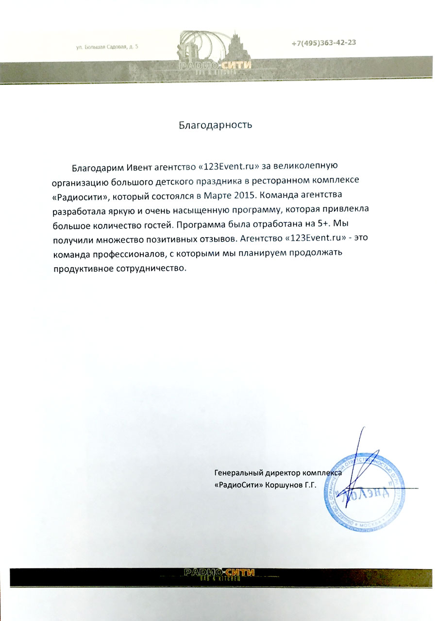 Благодарственные письма